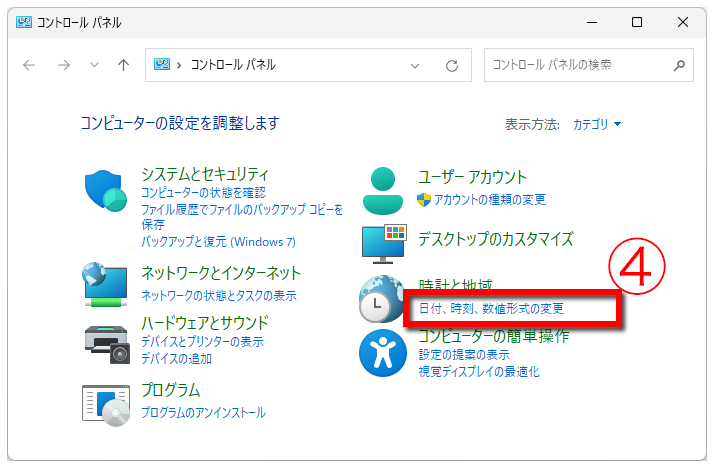 ④ をクリック