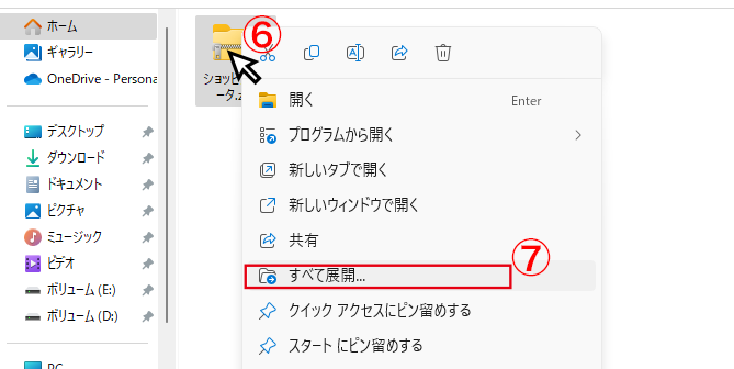 ⑦ 「すべて展開」をクリック