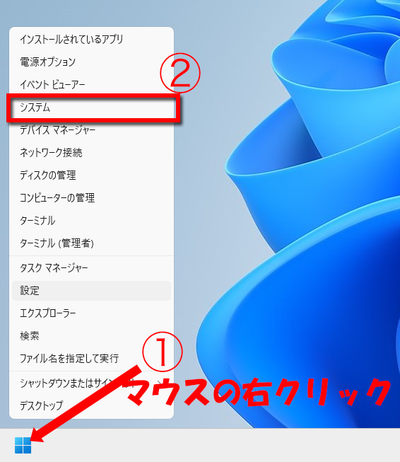 ②「システム」をクリック
